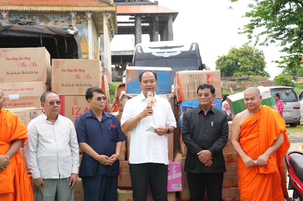 - ព្រះវិសុទ្ធិញាណ មុំ សយ ព្រះរាជាគណកិត្តិយស និងជាព្រះមេគណខេត្តស្វាយរៀង នៃគណៈមហានិកាយ បានដឹកនាំគណៈព្រះថេរានុត្ថេរ និងសប្បុរជន នាំយកអំណោយជាច្រើនមុខ សម្រាប់ជូនដល់កងទ័ពដែលឈរជើងនៅសមរភូមិជួរមុខ រួមមាន ៖ ម៉ូតូ ៧គ្រឿង, អង្ករ ៧តោន, បាយក្តាំងបំពង ១០០០កញ្ចប់, អំបុក ៤,៥០០កំប៉ុង, មី ១,៥០០កេស, អន្សម ២០០០, នំជៀល ១០០០, ត្រីខ ៤កេសធំ, ក្រមា ១៥០, អាវភ្លៀង ១០០, ទឹកដោះគោកូនក្មេង ២០កេស, ភេសជ្ជៈ ៧០កេស, ទឹកបរិសុទ្ធ ១៥០កេស និង ១៩៥០យួរ ព្រមទាំងសម្ភារ និងថវិកាមួយចំនួនទៀត ពិធីដ៏មានអត្ថន័យនេះត្រូវបានប្រារព្ធឡើងនៅវត្ត ប្រាសាទគោរបេង ក្រុងព្រះវិហារ ខេត្តព្រះវិហារ។