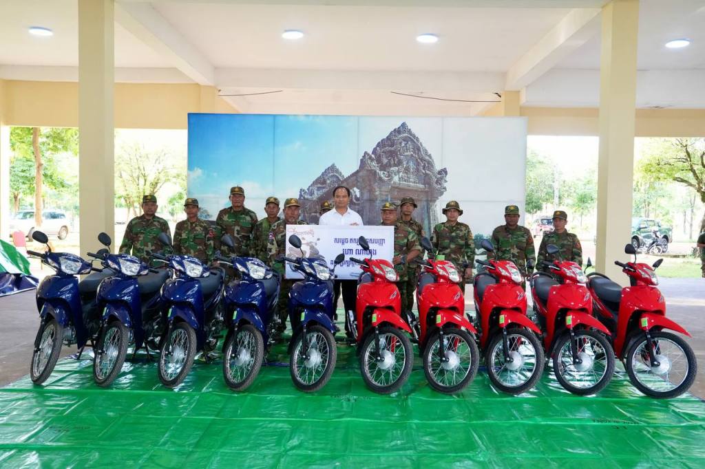 សម្តេច ឥស្សរវិទេសបញ្ញា ហោ ណាំហុង ឧត្តមប្រឹក្សាផ្ទាល់ព្រះមហាក្សត្រ បានឧត្ថម្ភម៉ូតូហុងដាវេវចំនួន ១០គ្រឿង តាមរយៈឯកឧត្តម គីម រិទ្ធី អភិបាលខេត្តព្រះវិហារ ប្រគល់ជូនដល់បញ្ជាការដ្ឋានកងពលតូចអន្តរាគមន៍លេខ៧ ចំនួន ៥គ្រឿង និងបញ្ជាការដ្ឋានកងពលតូចអន្តរាគមន៍លេខ៩ ចំនួន ៥គ្រឿង សម្រាប់ប្រើប្រាស់ជាមធ្យោបាយក្នុងការបម្រើឱ្យកិច្ចប្រតិបត្តិការការពារជាតិ ការល្បាតតាមខ្សែបន្ទាត់ព្រំដែន និងការរក្សាសន្តិសុខសណ្ដាប់ធ្នាប់ក្នុងភូមិសាស្ត្រខេត្តព្រះវិហារ ព្រមទាំងចូលរួមលើកទឹកចិត្ត និងថ្លែងអំណរគុណចំពោះកងទ័ព ដែលបានលះបង់កម្លាំងកាយចិត្ត ការពារបូរណភាពទឹកដី សុខសន្តិភាព និងសេចក្តីសុខរបស់ប្រជាពលរដ្ឋ។