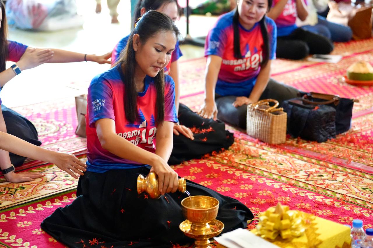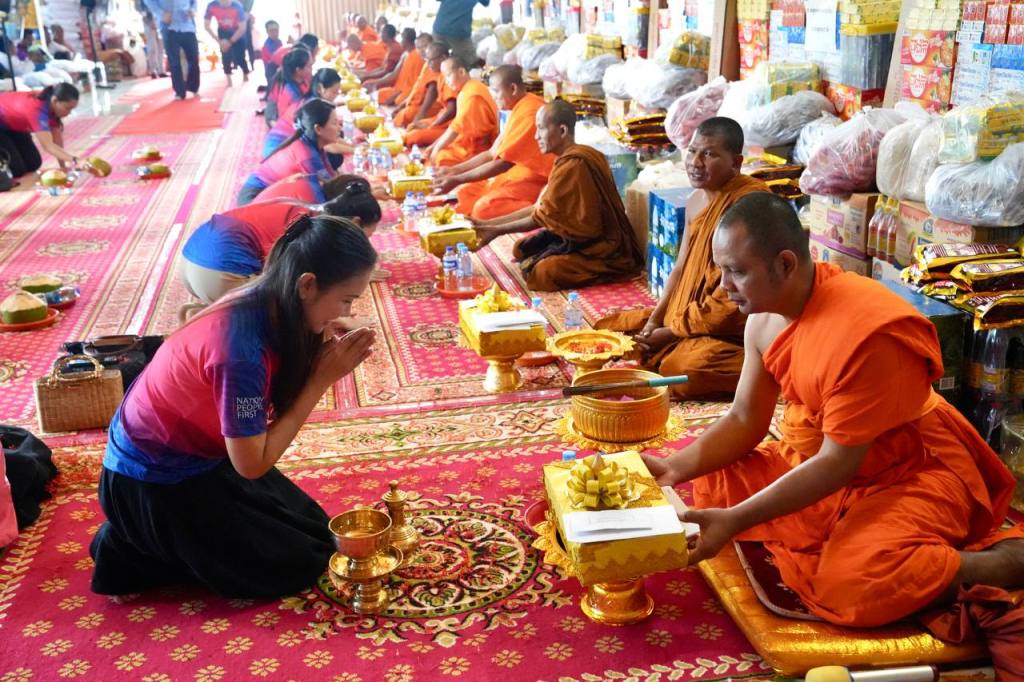 លោកជំទាវក៏បានបន្តដឹកនាំប្រតិភូនាំយកទេយ្យវត្ថុ និងអំណោយរបស់ សម្ដេចអគ្គមហាសេនាបតីតេជោ ហ៊ុន សែន ប្រធានព្រឹទ្ធសភានៃព្រះរាជាណាចក្រកម្ពុជា និងសម្ដេចកិត្តិព្រឹទ្ធបណ្ឌិត ប៊ុន រ៉ានី ហ៊ុន សែន មកប្រគេនព្រះសង្ឃនៅវត្តតាមបណ្តោយព្រំដែនកម្ពុជា-ថៃ ចំនួន ២៤វត្ត។ ជាមួយគ្នានេះ លោកជំទាវក៏បានចែកអំណោយគ្រឿងឧបភោគបរិភោគ សម្ភារប្រើប្រាស់ជូនប្រជាពលរដ្ឋក្រីក្រចំនួន ៤០០គ្រួសារ និងសម្ភារសិក្សាដូចជាកាតាបដល់សិស្សសាលាផងដែរ។ ពិធីនេះបានធ្វើឡើងនៅ វត្តស្រអែមរតនារាម ភូមិស្រអែម ឃុំកន្ទួត ស្រុកជាំក្សាន្ត ខេត្តព្រះវិហារ។