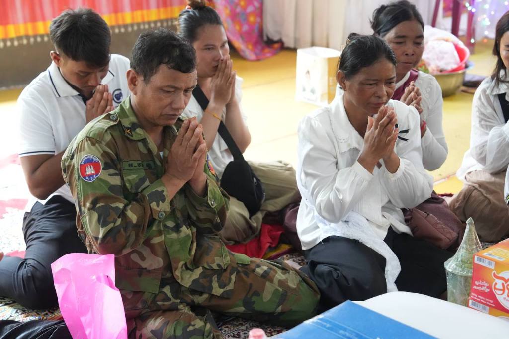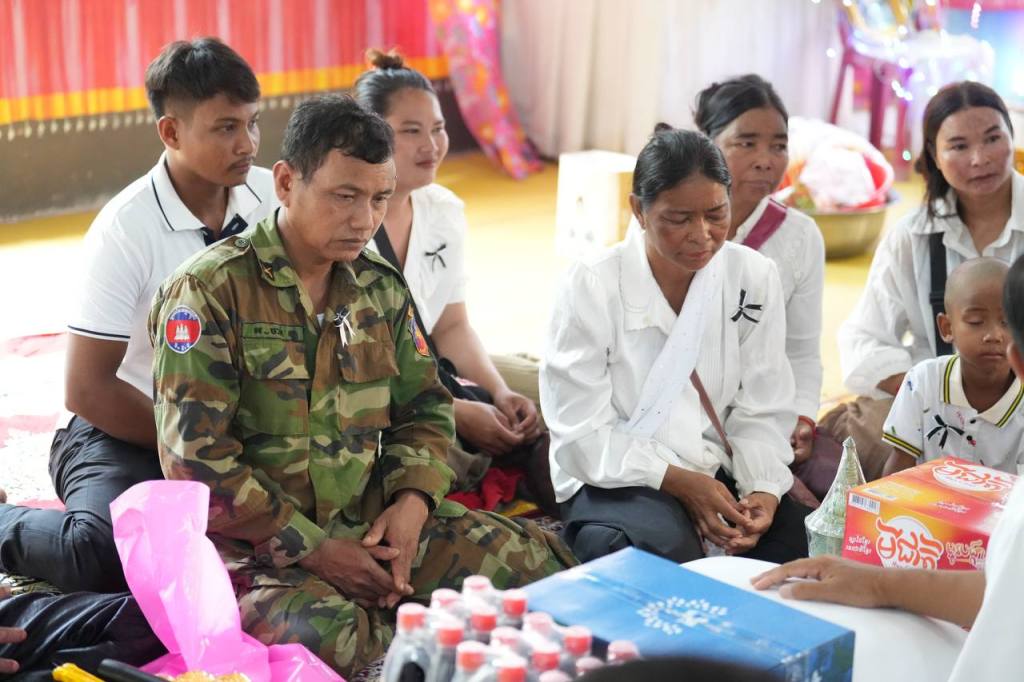 ដេីម្បីចូលរួមរំលែកទុក្ខជាមួយក្រុមគ្រួសារសពលោកស្រី ចាន់ សុខរ៉ា ត្រូវជាកូនរបស់វីរៈយុទ្ធជន ចាន់ សូ ជាទាហានជួរមុខនៅទិសមុំបី នៅកន្លែងបុណ្យសព ក្នុងវត្តទួលអណ្តែត ទីរួមស្រុកជាំក្សាន្ត ខេត្តព្រះវិហារ។